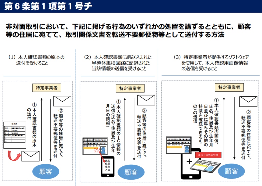 【6条1項1号チ】本人確認書類の画像またはICチップ情報読み取り+転送不要郵便
